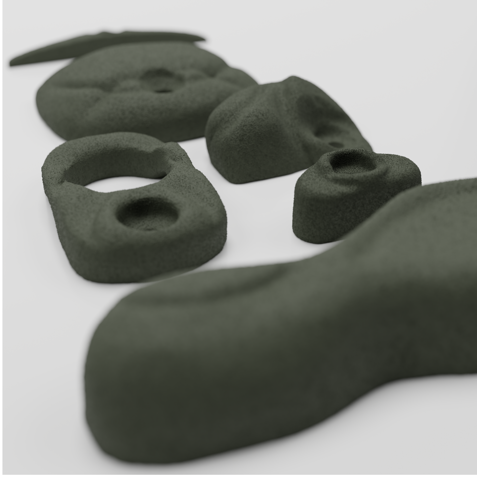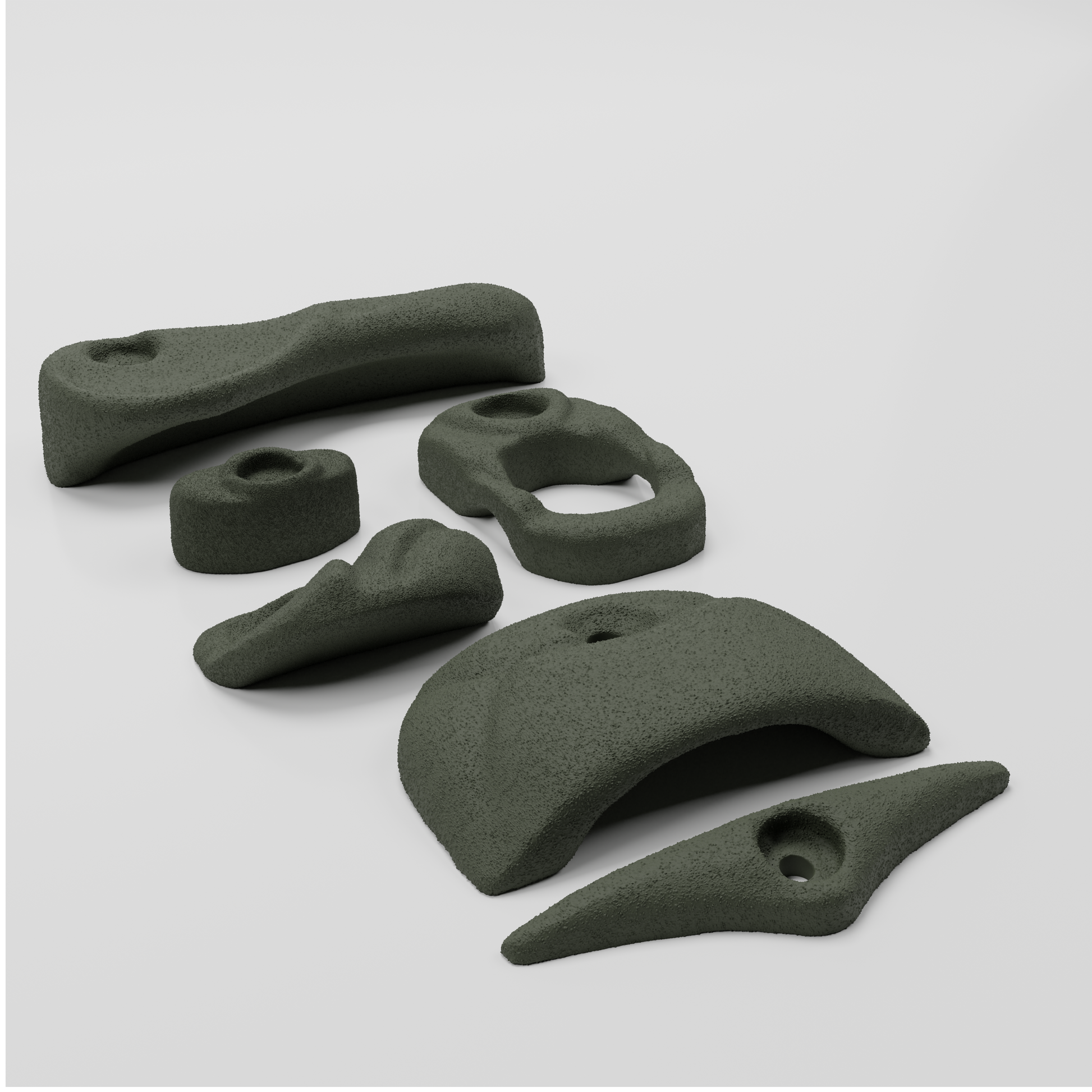 Hand-crafted climbing holds designed by climbers, for climbers. These polyurethane holds have a coarse texture for a solid grip, with designs you won’t find anywhere else. Perfect for professional gyms, home walls, kids walls, and more.